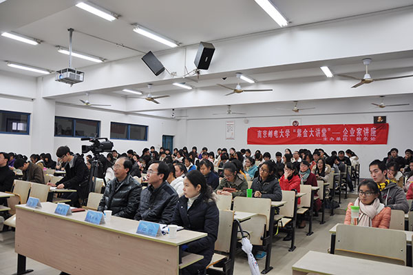 12月3日下午,由教务处主办、williamhill中文承办的威廉希尔“紫金大讲堂”――企业家讲座第33次活动在仙林校区教2-414教室举行。江苏省邮储银行常州分行行长刘晓波高级经济师做客“紫金大讲堂”,作题为“金融发展与人才需求”的讲座。讲座由公司党委书记储成祥教授主持。williamhill中文副经理张振亮副教授、williamhill中文副经理王林林副教授、公司党委副书记董军老师、部分教师、近200名员工参加讲座。