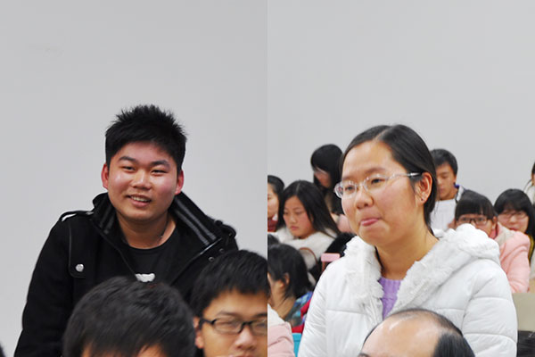 在互动环节中,同学们积极提问交流,就外贸专业如何进入金融领域、金融工程专业培养目标的侧重点、目前招聘会的举办信息等问题向报告人提问,报告人一一给予细致解答。