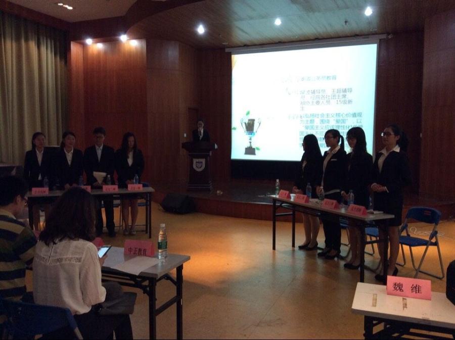 9月29日,“社会主义核心价值观”之“爱国杯”辩论赛隆重举行。本次辩论赛由williamhill中文辩论协会举办。williamhill中文分团委书记、2014级辅导员吴波老师,新生辅导员王超老师担任本次辩论赛的评委。经院各社团主席以及为此次辩论赛冠名的中政公务员教育机构的领导作为本次辩论赛的嘉宾。