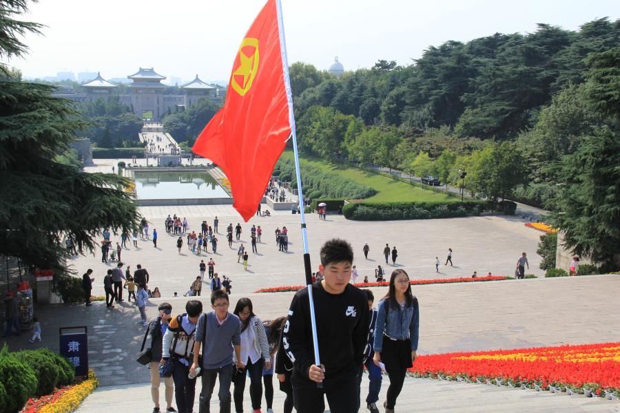 活动途经雨花台革命烈士陵园,阅江楼等,主题教育活动由探寻抗战遗址、缅怀抗战英烈、追忆抗战往事,唱响抗战歌曲等部分组成。在南京雨花台烈士陵园,通过对烈士就义群雕、纪念碑、烈士塑像以及纪念展馆的参观,同学们为中国革命先烈英勇献身、无私奉献的精神所折服,并以重温入团誓词、宣读倡议书、默哀、唱响国际歌等形式进一步感受革命精神、传承民族灵魂。随后,同学们和老师一起徒步明城墙,经中华门、华严岗门、挹江门、仪凤门至阅江楼,了解更多的民族抗战史。