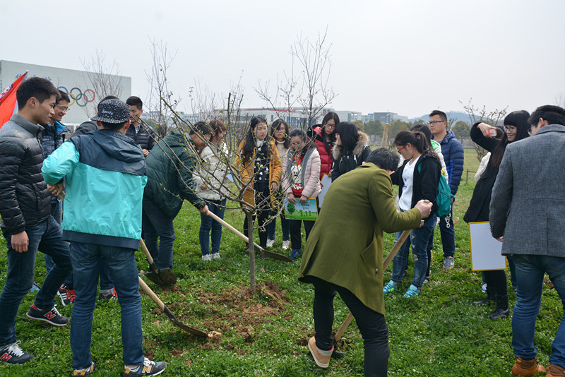 为迎接我国第38个植树节, 3月11日上午,公司党委、关工委、2012级毕业班员工党支部以及2015级员工党支部联合举办williamhill中文第二届“百年树人、把根留住”师生共植“学子林”活动。毕业班党员、2015级部分入党积极分子、公司团学组织代表来到威廉希尔仙林校区体育馆旁的海棠园,亲手种下海棠树。公司党委书记储成祥、党委副书记董军以及经济公司关工委委员蒋华园老师,2012级员工党支部书记王俊华、2013级员工党支部书记于茜、2014级员工党支部书记吴波老师、2015级员工党支部书记王超老师共同参加了植树活动,此次活动由王俊华老师主持。