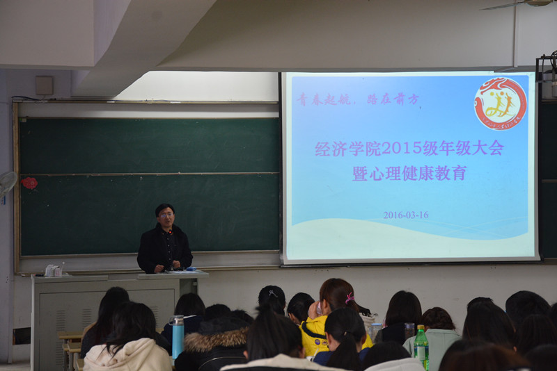 3月16日 下午,2015级在教4-201召开本学期首次年级大会及心理健康教育,公司党委副书记董军老师参加此次大会,本次年级会由2015级辅导员王超老师主持。