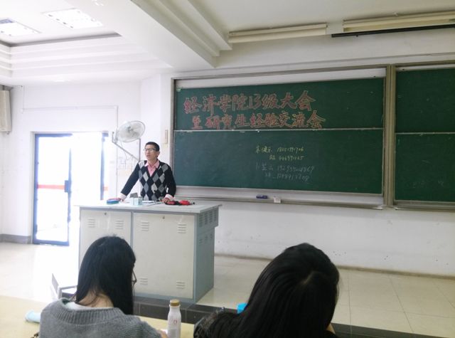 4月21日中午12点,williamhill中文于教2-101举行2013级本科生考研经验交流会。本次活动邀请到2012级辅导员王俊华老师、2012级学姐李萌萌,朱建乐,卜芷云,刘元雏,张玉,学长何烽,陈威兵,胡创奇为大家传经送宝,答疑解惑。交流会由2013级党支部组织委员徐千里主持。