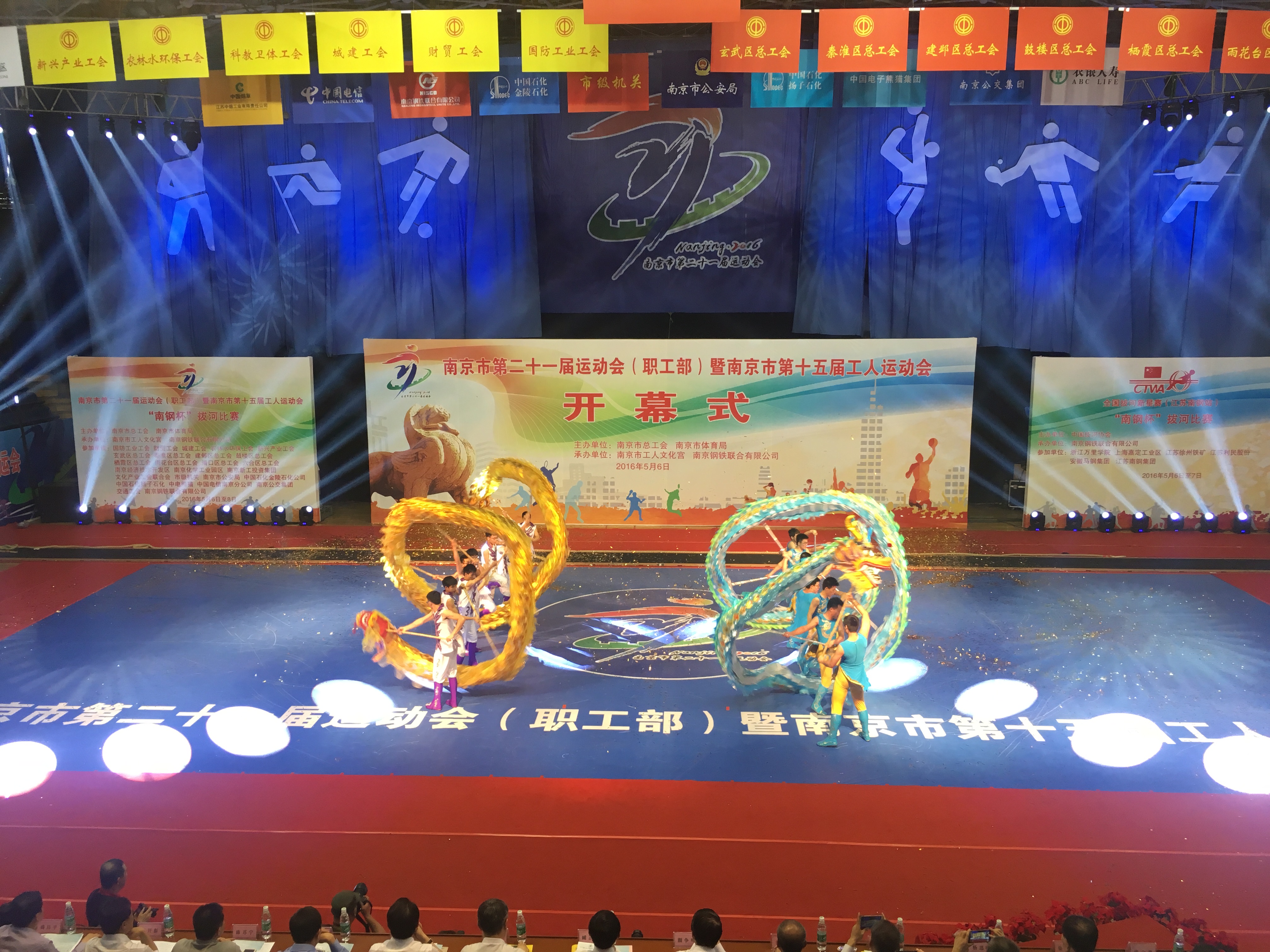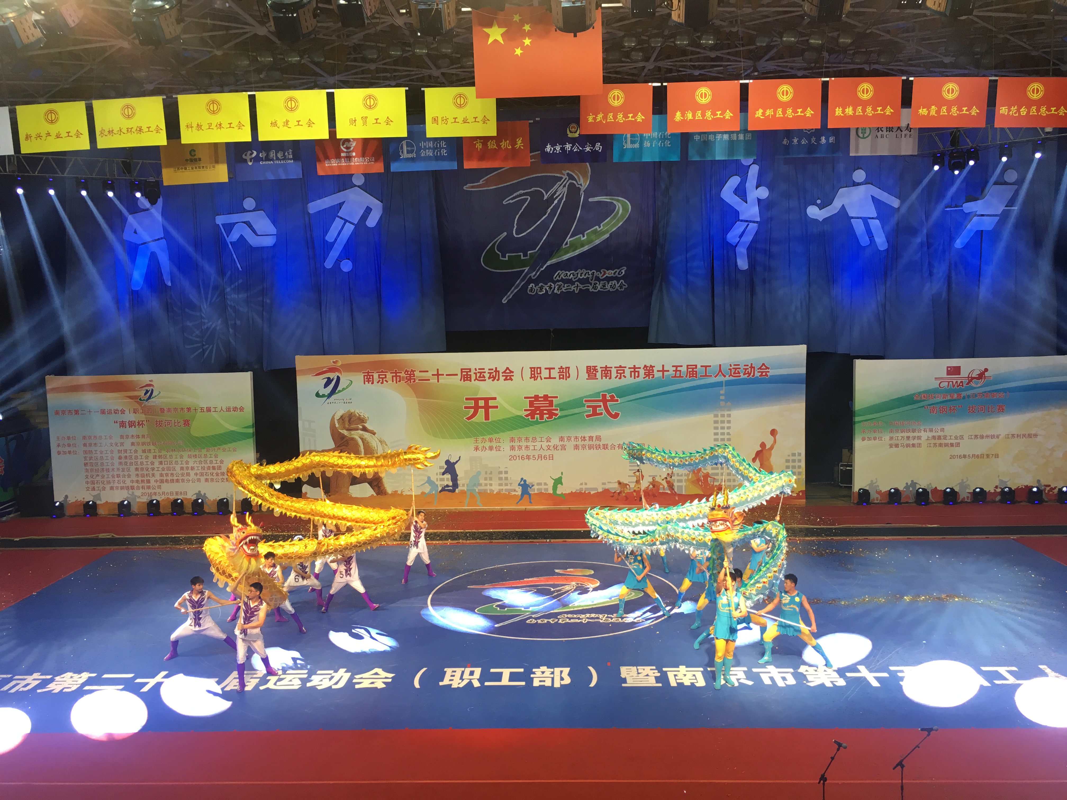 5月6日下午,由南京市总工会、南京市体育局主办,南京市工人文化宫、南京钢铁联合有限公司承办的南京市第二十一届运功会(职工部)暨第五届工人运动会开幕式在南钢体育馆拉开帷幕,参加开幕式的有南京市各区总工会,各产业、局、公司(集团)、各直属单位工会,市级机关工委、市公安局等有关单位的30支代表团,约1000余人。