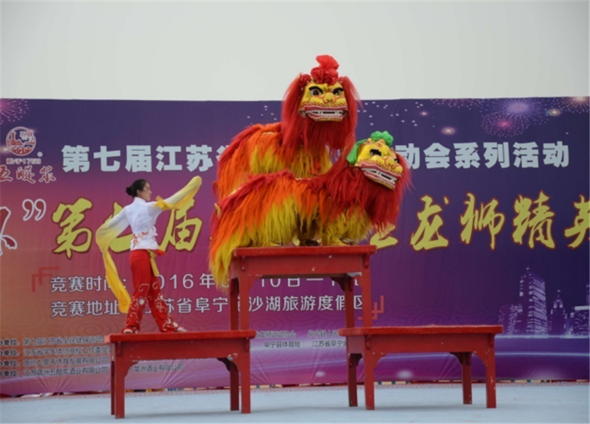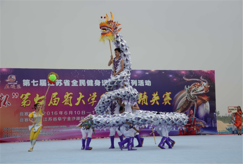 2016年6月9日至11日由第七届江苏省全民健身运动会组委会、江苏省员工体协高校工作委员会、江苏省龙狮运动协会、阜宁县人民政府联合主办的第七届江苏省全民健身运动会系列活动暨“五醍浆杯”第七届江苏省老员工龙狮精英赛在盐城市阜宁县金沙湖风景区隆重举行。大赛共有来自全省十三所高校的19支龙狮代表队,近230多名运动员同台竞技。公司龙狮团顽强拼搏,沉稳发挥,以总分14分荣获甲组(本科)舞龙全能冠军、金奖,甲组北狮全能铜奖,舞龙规定套路第二名,舞龙自选套路第二名,北狮自选套路第四名,北狮传统第三名,女子舞龙自选套路第四名,骆长剑同学荣获最佳狮头奖。