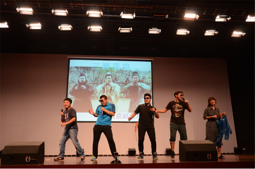 晚会第二篇章青春行集中展现的是各学校精神风貌,以娱乐和放松为主。由公司实践团队成员演绎的关于老员工自主创业的小品《三顾茅庐之创业篇》,表演过程中各类有趣的伴奏配合同学们富有戏剧性的表演,尤其结尾的歌曲《老司机带带我》响起时,观众们全都被逗乐了,将全场的欢快气氛推向高潮。