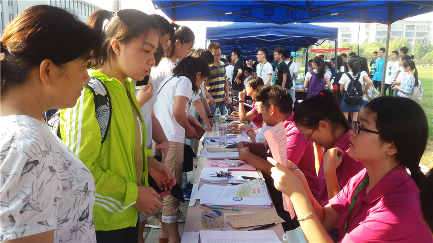 早晨,轮班安排的志愿者按时到达场地,开展志愿活动。整个上午及中午,在炎热的天气及繁杂的场合下继续有条不紊地办理新生注册、拍照、带领、解答疑问等工作,得到了员工家长的感谢和好评。大家克服疲劳和不适等种种困难,精心准备,热心服务,耐心解答,尽心给初到学校的学弟学妹们创造一个温暖、周到的氛围。