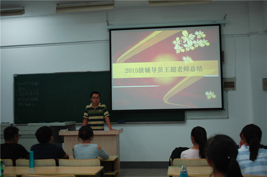 最后,15级辅导员王超老师对本次交流展示会进行总结发言。他首先肯定了同学们在课题研究和社会实践方面所取得成果,同时指出了同学们在暑期社会实践的不足,例如没有邀请媒体进行宣传。他希望同学们能选择与专业相近的的课题,鼓励同学们怀揣一颗乐群奉献的心,努力学习,学以致用,积极以多种渠道回馈社会,贡献自己的光和热。