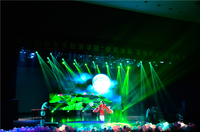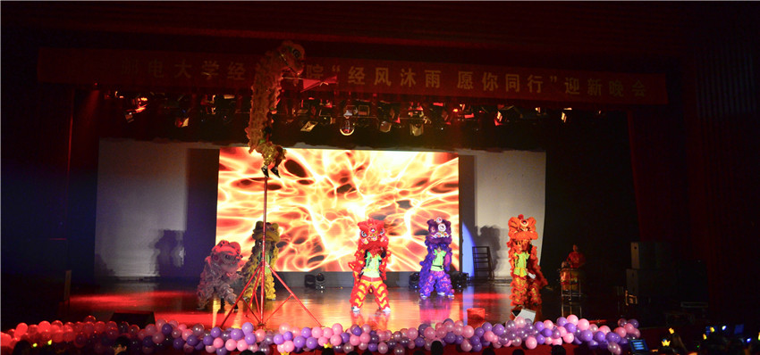 晚会在2016级经济统计学六班选送的暖场舞蹈串烧中拉开了序幕。整场晚会共分为两个篇章。上篇“吟醉民族情”中,老员工舞龙表演《龙腾华夏》惊艳亮相,让我们充分感受到了中华传统文化的浓厚底蕴;汉服舞《春江花月夜》舞姿古朴典雅,将古香古色的汉族文化的美展现得淋漓尽致;歌曲串烧《远方的爱与歌》和《Be tough guy》深情演绎众多经典曲目,将现场观众带入一个美好的世界;南京财经大学相声社选送的《量子力学与广义相对论在相声表演与制作中的指导及应用》对白诙谐风趣,场内笑声阵阵;民舞串烧《舞韵山水情》舞步婀娜多姿,各具特色的民族风情感染全场观众;小品《奉承》笑点不断,令人捧腹;艺术体操《nothing on you》以其轻快活泼的节奏,彰显青春风采,让人领略到了不一样的精彩;大一大二辅导员和大一新生代表选送的情景诗朗诵《以青春的名义宣誓》青春洋溢,斗志昂扬,向同学们传递了永不言弃、相信自己的正能量;舞狮表演《雄师争霸,步步登高》,惟妙惟肖,活灵活现,狮子步步攀升寓意祝愿经院学子百尺竿头,更进一步!