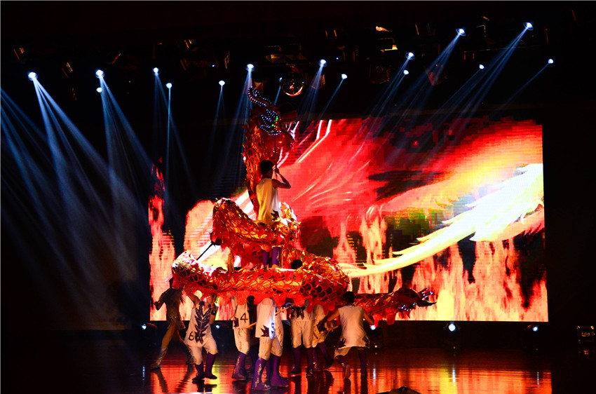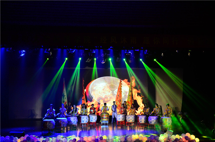 下篇“ 狂欢不眠夜”中,由Dominate电声乐队带来活力四射、激情洋溢的开场曲,给同学们带来了一场音乐盛宴;858街舞社和2016级经统五班选送的《858 popping team+Freaks》,动感十足,活力四射,与音乐完美融合;小品《艺考那些事儿》妙趣横生,将晚会又一次带入高潮;由拉丁舞协会选送的拉丁舞表演《merry》,每一名舞者都展现出她们对拉丁舞的热情,气韵灵动的舞姿展现了独特优雅的个人魅力;2016级新生选送的吉他弹唱《high-fy》,经典老歌唱不停,超强的感染力嗨翻全场;员工会节目《没有票抽不中奖的中干们》引爆全场气氛,对每一位在幕后辛苦筹备晚会的员工会中干表示感谢;晚会在龙狮团精心编排的水鼓表演《水鼓中国龙》中落下帷幕。