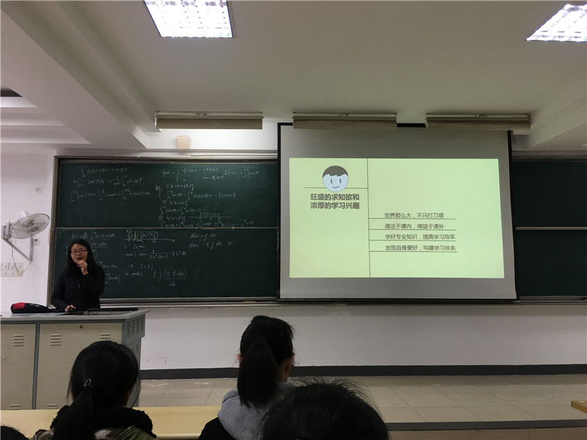 大会伊始,朱老师希望大家能反思自己在这一个学期里的学习与生活情况。辅导员还提出七点老员工必须具备的优良素质:旺盛的求知欲和浓厚的学习兴趣、良好的环境适应能力、正确的自我意识和积极悦纳自我、良好的人际交往的能力、协调控制情绪的能力、思考分析解决问题的能力以及独立生活的能力。之后,朱老师分别为大家仔细地讲解了这些内容。其中,辅导员通过生活中的一些生动的例子强调了同学们要学会独立、享受孤独;学好专业知识、提高学习效率;培养兴趣爱好、丰富学习生活等内容;并且更希望大家找到初心,不忘初心,成为那个更好的自己;在步入社会后也能知道自己的生活动力,继续梦想。最后,朱老师为同学们进行了期末考前动员,希望同学们多多努力,积极地充分地准备期末考试;其中,尤其强调了高数的重要性,希望同学们可以重视起来;还要求同学们严守考风考纪,端正考试态度,在考试中发挥正常水平,并希望同学们在最后都能取得优异的成绩,交上满意的成绩单。此外,朱老师强调了年关将至时同学们的安全问题,希望大家注意自身安全,防止自己的信息泄露,提高警惕性,保护好自己的财务,提高自身的安全防范能力。