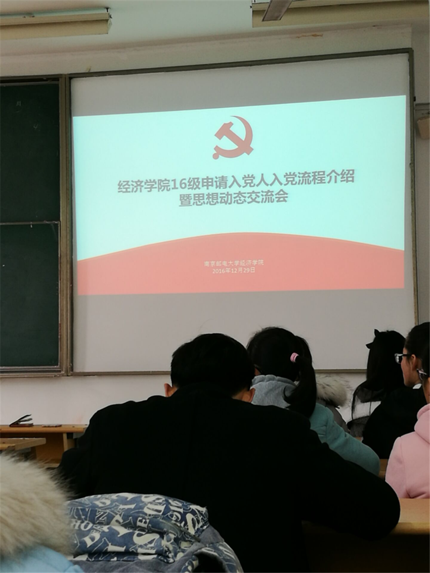 12月29日下午3:30,williamhill中文16级申请入党人入党流程介绍暨思想动态交流会在教3-205举行,学院组织干事王超老师、16级辅导员朱蔚懿老师出席本次大会,16级申请入党的全体同学参加大会,本次会议由朱蔚懿老师主持。