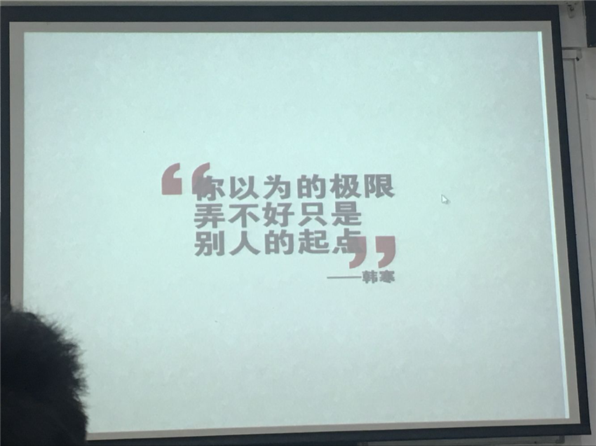 之后,心理委员李喜洋同学向我们展示了这次心理班会的主题“惜时如金,逐梦前行”。心理委员首先向我们分享了一些与心态有关的名言警句,并且帮我们算了大学实际上我们的学习时间到底有多少,让我们直接明了的了解大学时间的宝贵。最后,李喜洋同学向我们分享了一个励志视频《田埂上的梦》,希望所有同学都能努力完成自己的梦想。