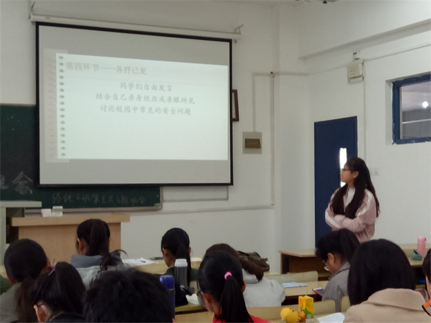 接着,心理委员与大家一起讨论了“校园贷”这个热点话题,并提醒同学们一定要提高防范意识,注意自己的财产安全。与此同时班长向我们讲述了同校同院的一个女生的真实案例。让同学们更加真切直观的了解到了诈骗离我们并不遥远,增强防范意识必不可少。