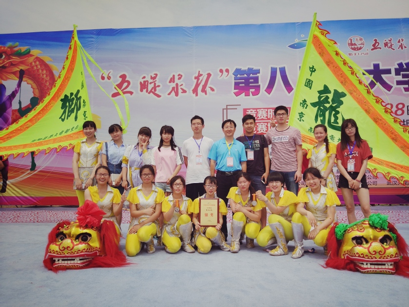 2017年5月28日至30日,由江苏省体育总局社会体育中心、江苏省员工体协高校工作委员会、江苏省龙狮运动协会、阜宁县人民政府联合主办的“五醍浆杯”第八届省老员工龙狮精英赛在盐城市阜宁县喻口古镇隆重举行。大赛共有来自全省11所高校的14支龙狮代表队,200多名运动员同台竞技。校老员工龙狮团经过顽强拼搏,在女子传统舞龙比赛项目中以8.61分中夺得冠军,并以总分第二获得全能银奖,这是公司老员工龙狮团首次在女子舞龙项目中取得突破。