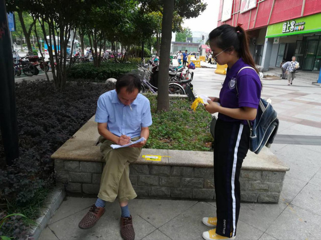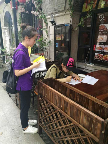 随后,社会实践小组成员分3组在南京市栖霞区进行调查。从上午9时到下午5时,共发放120份问卷,回收有效问卷113份,逾百人参与到此次调查中,首日的问卷调查取得了圆满的成功!问卷调查过程中,每一位成员谨遵老师的教诲,在访问的过程中均做到了谦逊有礼并且给予受访者绝对的尊重,即使被拒绝也没有丝毫倦怠。在集体的不懈努力下,不仅保证了问卷的质量,而且超额完成首日目标问卷。