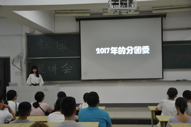 为了使2017级新同学能够尽快了解公司各社团情况,同时更好地推动社团的自身建设、丰富校园文化。2017年9月8日晚上,学院分团委在教4-101举行了2017级新生社团宣讲会,全体新生和学院各社团骨干参加了此次活动。