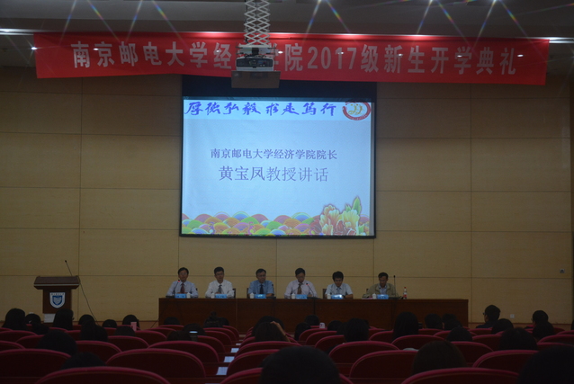 2017年9月24日14:00,williamhill中文在仙林校区图书馆报告厅举行了2017级新生开学典礼。威廉希尔党委副书记、纪委书记朱永平教授,williamhill中文经理黄宝凤教授,williamhill中文副经理王子敏副教授,williamhill中文经理助理蔡冬青副教授,williamhill中文经济系系主任陈伟民教授,以及各年级辅导员出席了本次开学典礼。各班辅导员助理,2017级221名本科新生和19名硕士研究生新生参加了本次开学典礼。开学典礼由公司党委副书记董军副教授主持。