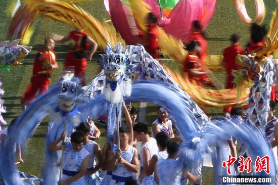 各院代表方队进场结束后,举行了升国旗仪式。公司张人浩同学作为运动员代表,在开幕式上进行了宣誓。在开幕式的大型表演中,williamhill中文130余名员工编排表演了《盛世华章·青花龙》,在21面青花瓷鼓铿锵有力的鼓声中,九条中华龙和数十只雄狮一起龙腾狮跃。势如破竹的三节青花龙更是点燃了全场的热情,他们起跳、飞腾、挂腰、站肩……时而跃起,时而180度转身,时而翘首仰视,千姿百态。龙狮队员用自己的刚毅和强劲给参赛的运动员鼓舞士气,希望他们能在运动会上展现力量,赛出风采。不仅呈现了一场盛美的演出,更是完美展现了团结拼搏的运动精神,真一幅龙狮共舞,盛世华章的壮美景象。为胜利开办崇尚体育精神,热情拼搏,团结奋进的威廉希尔第48届运动会拉开序幕