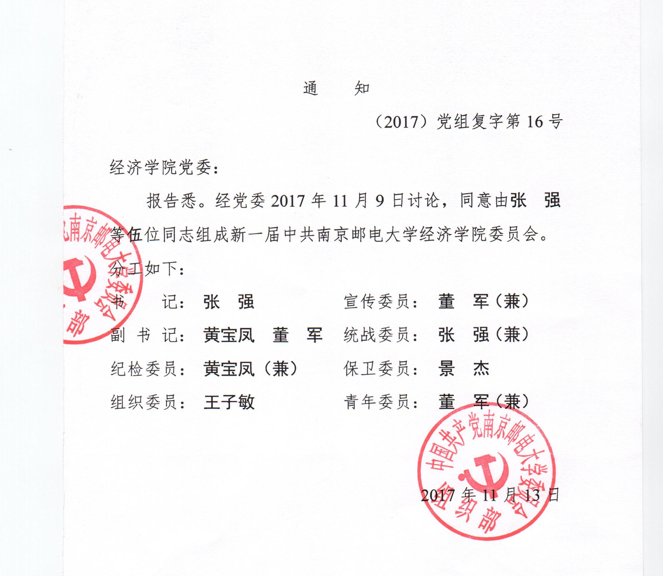 次日,经新一届公司党委委员会议无记名投票选举产生张强同志为党委书记,黄宝凤同志、董军同志为党委副书记,景杰、王子敏同志为党委委员,报请公司党委审批。