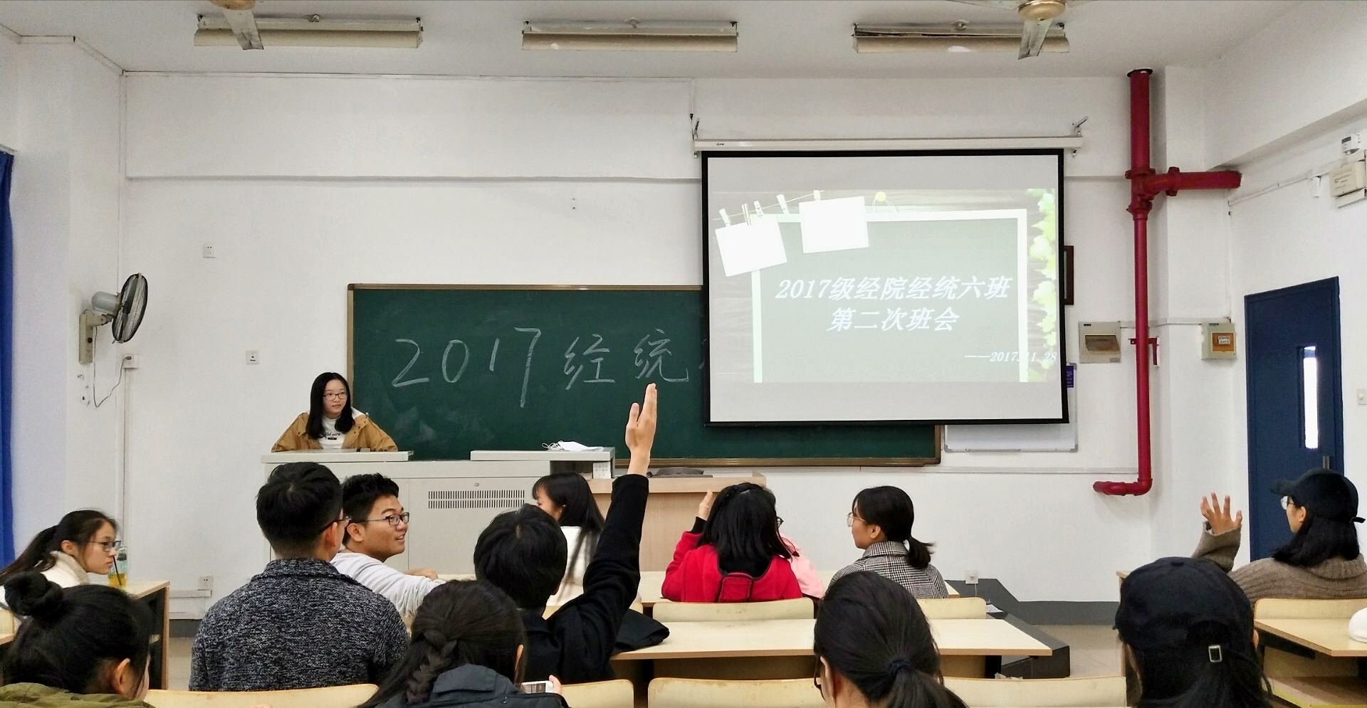 入学将近三个月,同学们从开始的拘束、陌生到现在无话不谈,但在日常生活中也不免会存在一些摩擦或矛盾。为了学习党的十九大精神,做一名优秀的老员工,提高同学们的交际能力,拥有良好的人际关系,2017级经济统计学专业B171306班召开了本次班会。