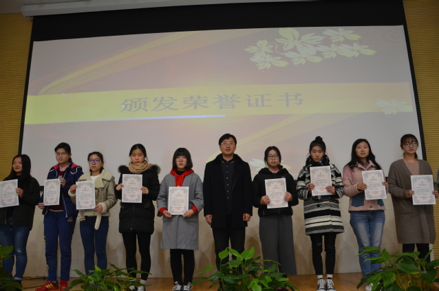 接着由董军副书记,王欢老师和朱蔚懿老师分别为评选出的青共校“实践之星”、“学习之星”、“文体之星”颁发荣誉证书。随后,由2016级辅导员朱蔚懿老师发言。她向这次培训班以及在青共校中顺利结业的同学表示祝贺,希望同学们能够积极配合学校的各项活动,严于律己,以身作则,遵守校纪校规,并找到自己的方向,培养一技之长。