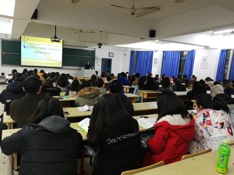 在新学期开学之际,为鼓励员工积极备考2019年研究生招生考试,2015级全体本科生于3月8日晚上,在教4-202举行考研动员会。williamhill中文统计系范兆媛老师、2014级辅导员王俊华老师、2016级辅导员朱蔚懿老师应邀出席此次考研动员会,此次动员会由2015级辅导员王超老师主持。