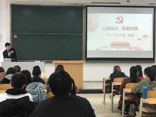 为了激励青年大员工牢固树立共产主义远大理想和中国特色社会主义共同理想,不忘初心、牢记使命,努力奋斗,更好地担负起新时代的历史使命。williamhill中文B171305班于2018年3月15日下午在教4-409教室开展了 “四进四信”、“致敬经典”主题班会。班主任易盈盈老师莅临班会并做重要讲话。