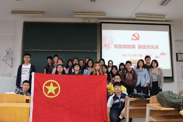 团支书盛丹丹带领同学们开展了以“亮团旗团徽,展团员风采”为主题的团日活动,组织团员在团旗前奏唱了《光荣啊!中国共青团》,重温入团仪式,为每一位共青团员佩戴了团徽,并在团旗前庄严宣誓。经无记名投票,在公平公正的原则下,推选出了韩丰和盛丹丹两名同学为入党积极分子。