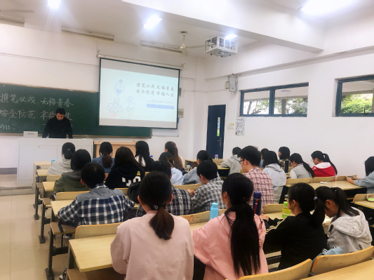 2018年4月25日,williamhill中文2016级B161206班开展 “携笔从戎,无悔青春;安全防范,幸福人生”主题班会。本次班会由徐子萱、庞悦、张宸珲同学负责策划并主持,旨在向同学们进行征兵宣传动员及开展安全知识教育工作。