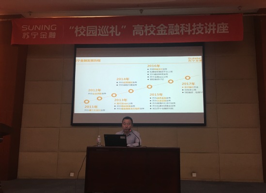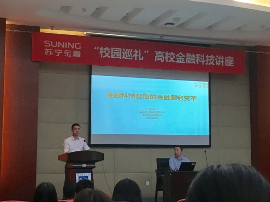 本次课程主要包括“苏宁概况”、“苏宁金融概况”、“苏宁金融科技”以及“苏宁金融科技实践”四个部分。首先,孙主任向同学们介绍了苏宁的概况,让大家初步了解了一个全新的苏宁集团。接着,孙主任为大家展示了苏宁金融的发展过程以及苏宁金融目前的市场地位。随后,孙主任讲述了金融创新发展的历史,强调了金融创新的重要性,并通过生态变化、渠道变化、场景变化、媒介变化等方面介绍了金融科技对金融服务带来的变化。最后,孙主任通过视频、图片等形式为大家展示了苏宁金融的科技实践,其中苏宁无人店、苏宁极物、人脸识别系统等“黑科技”,让现场同学惊叹不已。