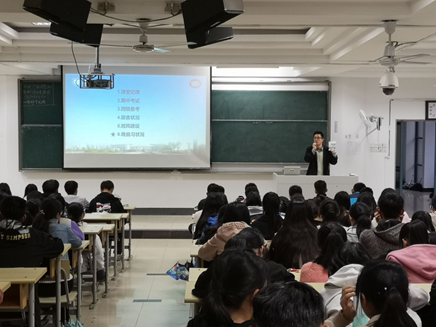 王老师首先对大一员工从入学以来的适应状况做了阶段性总结,对大一员工积极参加学校各类学习服务型活动给予了肯定。王老师从课堂纪律、期中考试、四级备考、宿舍状况、班风建设等方面为大一新生给出了建议和指导。王老师要求员工在校期间按时参加学校教学计划规定一切课程活动,遵守课堂纪律,认真听课,不迟到不早退;要内化自己的道德修养,转化成自觉行为;要提高自主学习能力,为即将到来的期中考试、四级考试制定详细合理的的复习计划,积极备考,诚信应考。