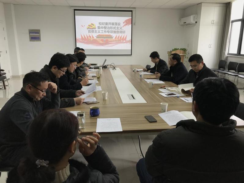 李书记阐明了本次督查调研的目的、意义及相关要求。公司党委书记张强同志从贯彻执行学校专项整治工作部署的情况、调研排查问题的方式方法及过程、围绕五方面工作重点排查出的问题清单和上报情况、主体责任清单的制定情况作了详细汇报,并就推进学校开展集中整治形式主义、官僚主义工作提出了意见和建议。