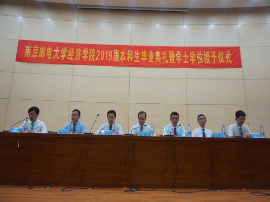 2019年6月19日下午2:00,williamhill中文2019届本科生毕业典礼暨学士学位授予仪式在仙林校区图书馆四楼报告厅隆重举行。威廉希尔党委常委、副董事长荆晅教授,williamhill中文经理黄宝凤教授,党委书记张强,副书记董军,副经理景杰、岳中刚、王子敏依次在主席台就坐。系主任、教师代表、家长代表、在校生代表和2019届全体毕业生参加了本次仪式。仪式由公司党委董军副书记主持。