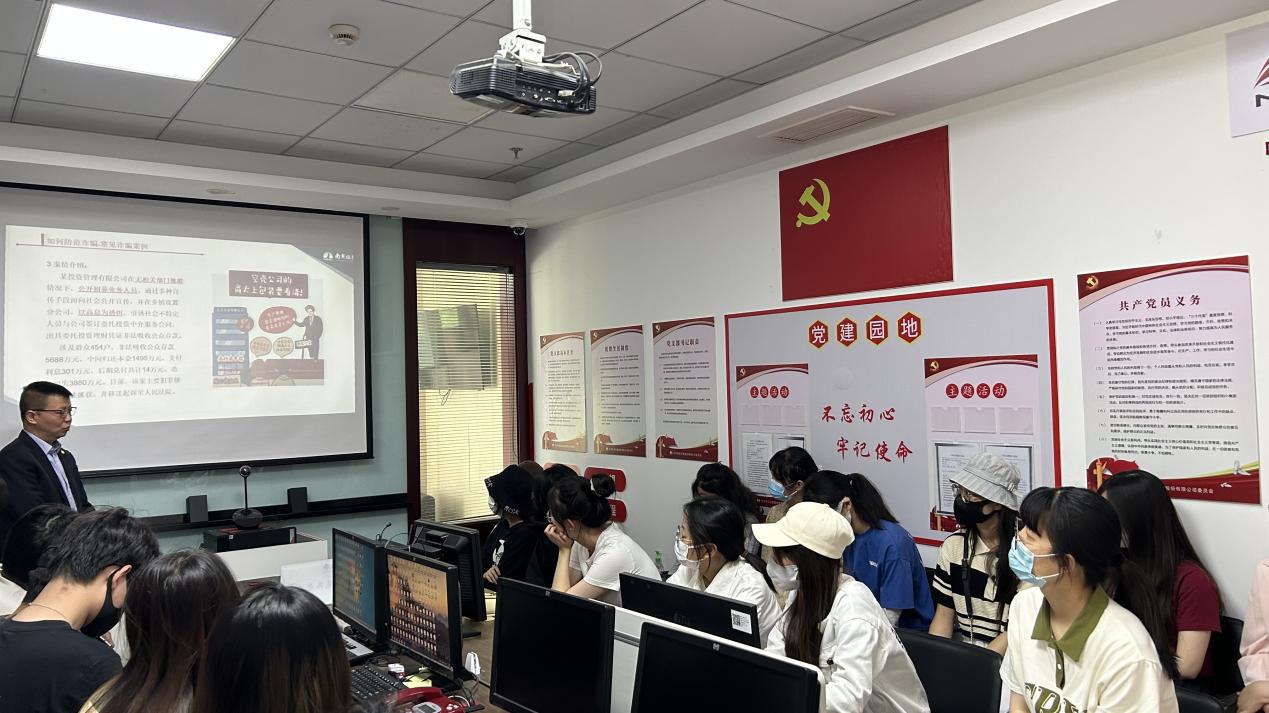 南京证券文苑路营业部金老师主要从南京证券的发展历程、证券行业的基本知识、预防金融诈骗的知识出发,为21级经统专业的同学们做了细致入微的讲解。同学们听讲认真,收获良多,表示将以此为契机,在日常学习生活中加强对于金融知识和证券行业的了解,自觉提高征信意识和金融安全防范意识,多参与金融和证券行业的实习实践,努力做到专业知识的活学活用、学有所用。