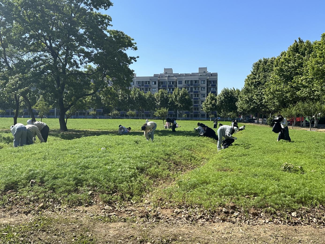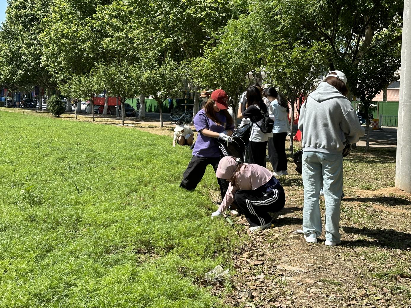 活动开始前,后勤绿化队管理员吕伦伟给各位同学发放了手套和垃圾袋等除草必备用品,并带领同学们学习了辨别花苗和杂草的技巧。活动中,同学们分工明确,一部分负责拔除杂草,另一部分则负责后续的清理与填土工作。初夏的阳光下,经院学子俯身面向土地的身影与青绿色的嫩苗相交,青春与新芽汇就出了一幅富有生命力的画卷。除草后,格桑花幼苗能更充分地汲取营养、茁壮成长,并将在毕业季盛开,这也是员工们以实际劳动表达对即将毕业员工的美好祝福。