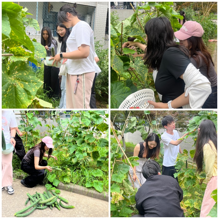 收获时节悄然而至。同学们准时抵达北荷宿舍区“柚子工坊”,眼前菜地硕果累累,丰收景象喜人。活动伊始,宿管人员为同学们配发了果篮、剪刀等采摘工具,并现场示范讲解如何辨别果实成熟度。掌握要领后,同学们手持果篮,在指导下仔细分辨,小心翼翼地将成熟的果实采摘入篮。大家专注劳作,亲手收获的喜悦洋溢在每个人的脸上,在体验辛劳付出的同时,也深刻感受到丰收带来的满足感。经过共同努力,沉甸甸的劳动果实堆满果篮。