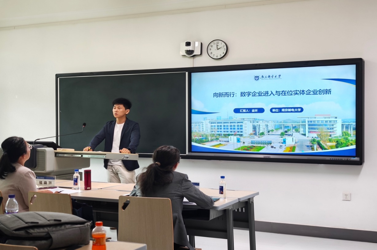 公司金环老师受邀在大会平行论坛做成果分享。会上,金老师结合国家自然科学基金青年项目的阶段性研究,汇报了论文《向新而行:数字企业进入与在位实体企业创新》,从数字企业进入视角考察其对在位实体企业创新模式选择的影响,引起了与会者的广泛关注和热烈讨论。