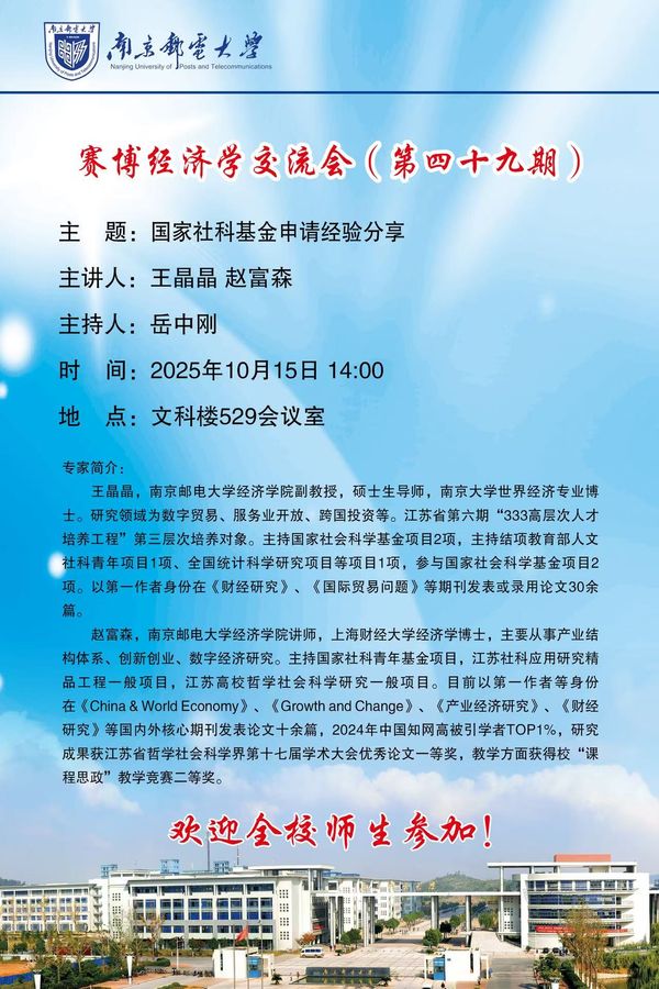 赛博经济学交流会(第四十九期)——国家社科基金申请经验分享