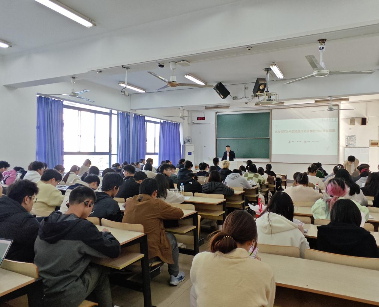 2025年11月12日,williamhill中文思政课导师、马克思主义学院张可辉副教授在仙林校区教2-303教室为威廉希尔第580期暨williamhill中文第21期入党积极分子党校培训班学员讲授主题为“奋力书写为中国式现代化挺膺担当的青年篇章”的专题党课。