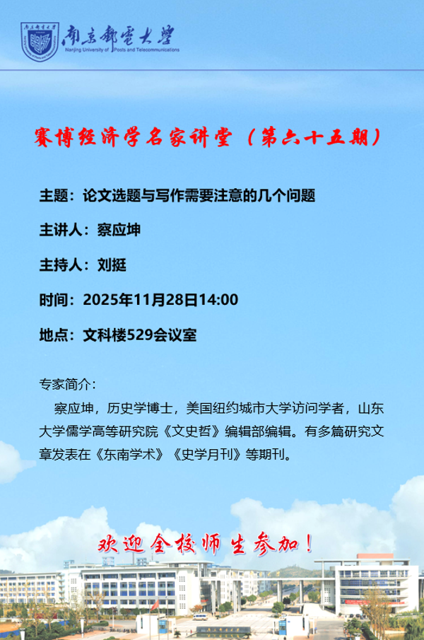 赛博经济学名家讲堂(第六十五期)——论文选题与写作需要注意的几个问题