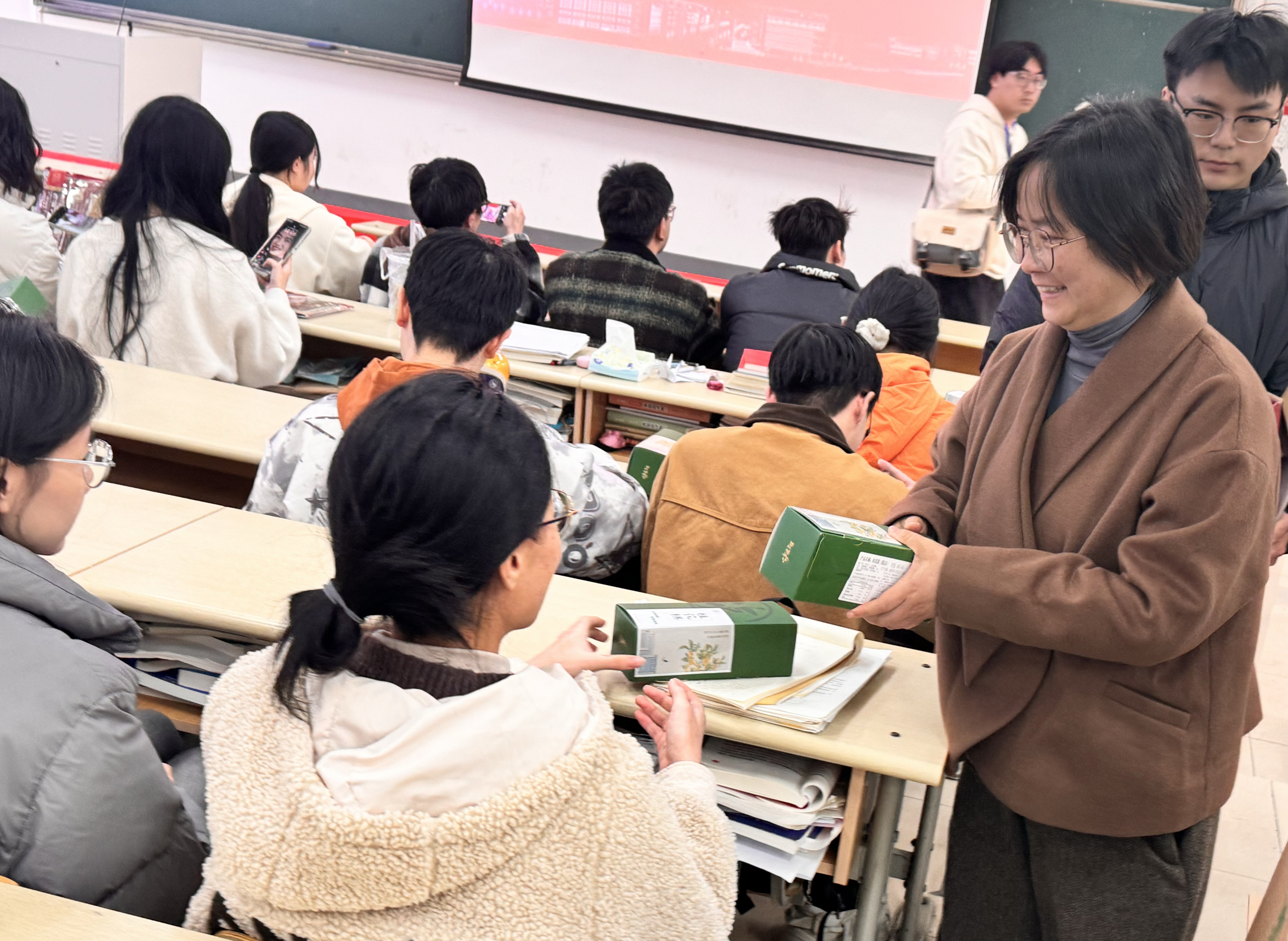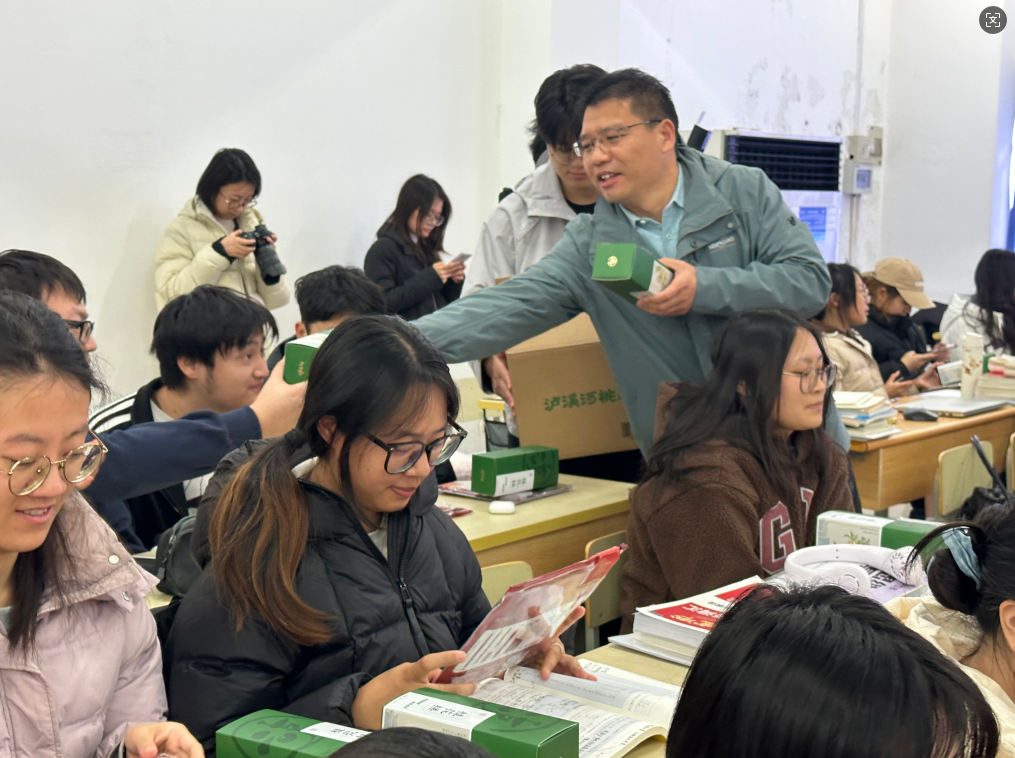 伴随着温馨的音乐,胡董事长与学院的领导、辅导员老师们一同为同学们送上了精心准备的“暖心加油包”。其中,既有寓意“蟾宫折桂”的香甜桂花糕,还有一份份刻印着“金榜题名”字样的定制文具。这份精心筹备的慰问品,既是对学子们备考付出的肯定,更承载着学校与学院对大家金榜题名的殷切期盼。