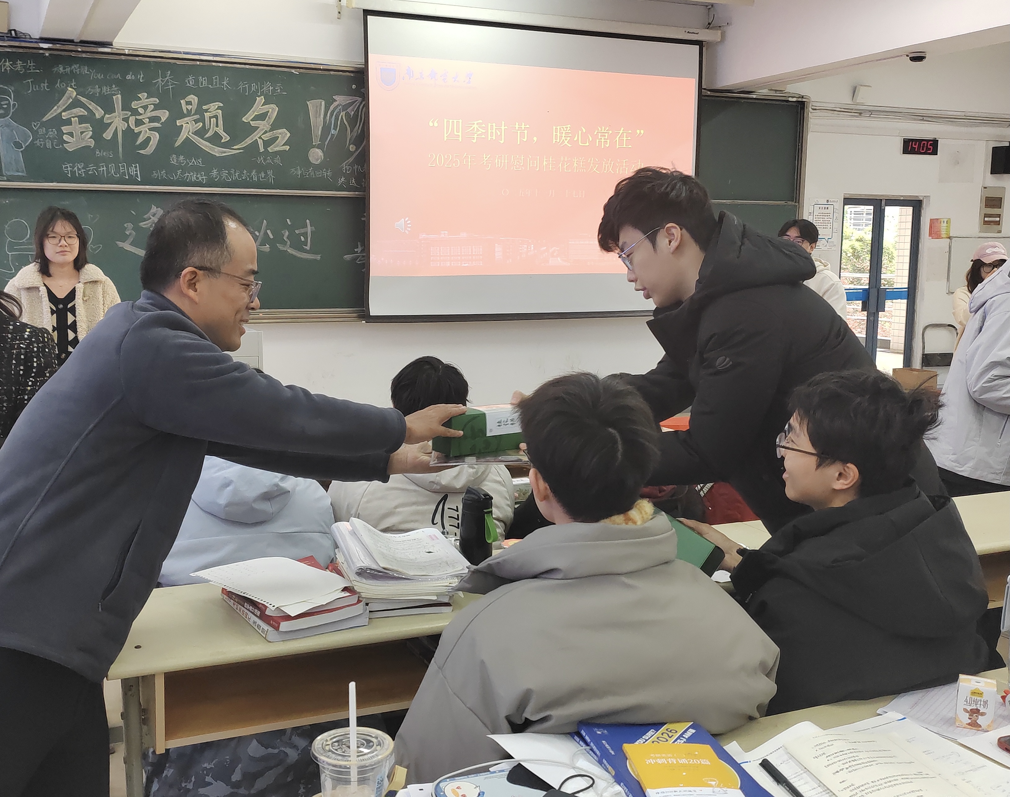 为切实做好考研学子服务保障工作,传递学校与学院的深切关怀,11月27日下午,williamhill中文于教4-201举办“四季时节,暖心常在”2025届考研慰问桂花糕发放活动。威廉希尔党委常委、副董事长胡纵宇,公司党委书记刘挺、党委副书记吴迪、副经理杜运伟、分团委书记尤波、2022级辅导员储宜旭、2024级辅导员周洪山参与本次活动。