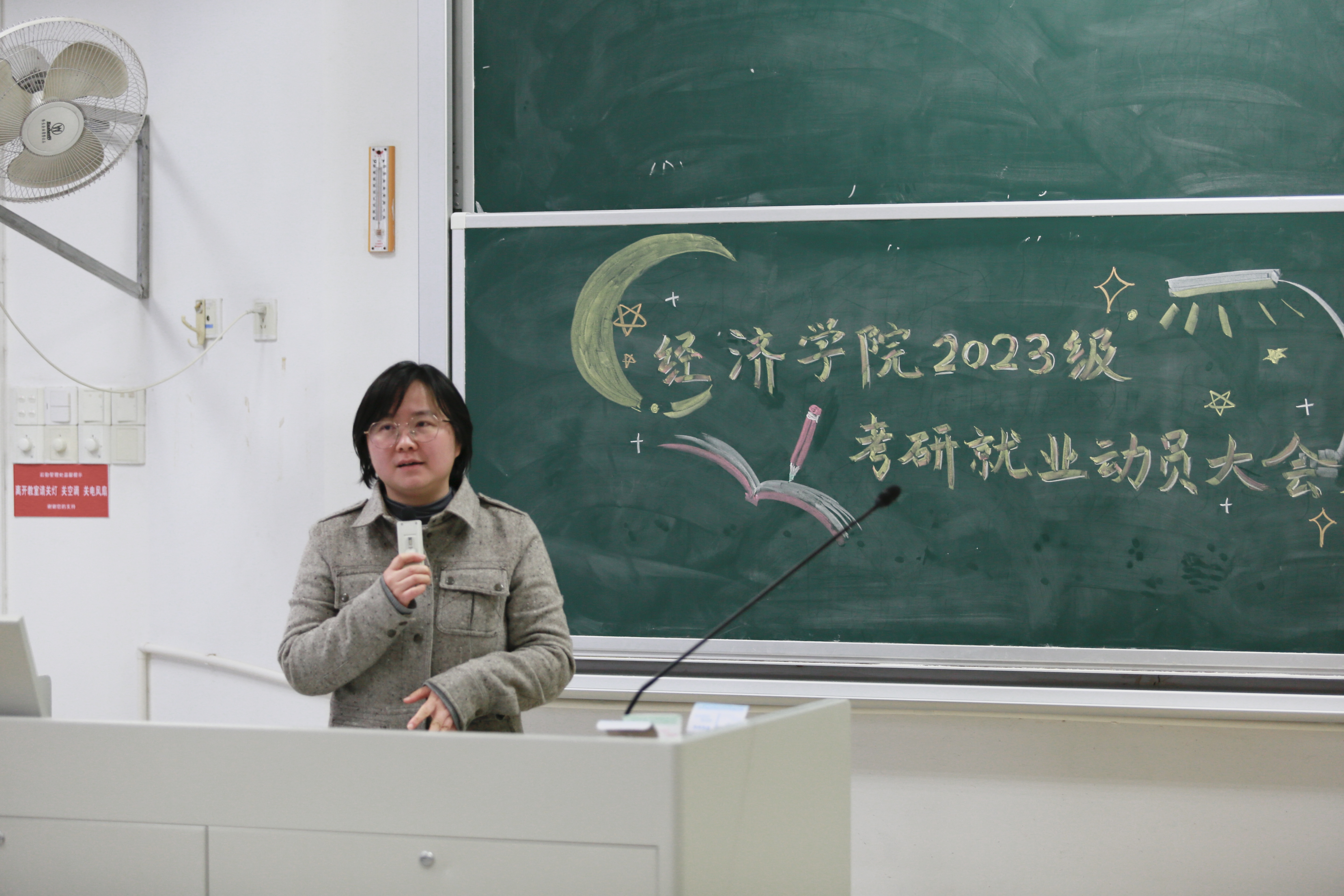 最后,辅导员尤波老师结合日常管理与详实数据,结合年级管理工作,通报了近年来考研及国考录用情况,提醒同学们在择校、择业时要立足实际,切忌跟风。此外,他还就课程修读、防范电信诈骗及网络行为规范等日常工作进行了强调。